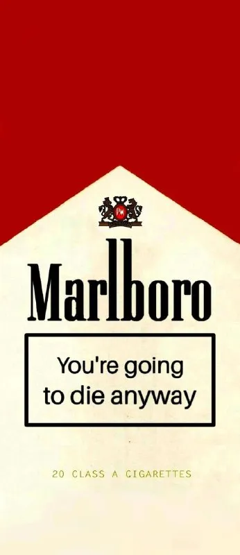 That's exactly how Marlboro's advertising strategy ought to be publicized to all smokers that inattentively pays a reckless 10 dollar bill to some corner liquor shop on an average of 1-2 day-basis, costly yet deadly, I know exactly what breathed into my lungs. https://ift.tt/tU5ObhF
